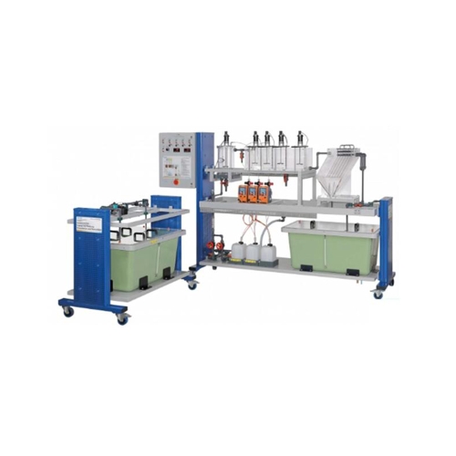 MR-CE 586 Precipitation and Flocculation Vocational Training Equipment Hydraulic Bench Description CE 586 demonstrates the removal of dissolved substances by precipitation and flocculation with subsequent sedimentation. First, raw water is produced in a tank to contain dissolved metal (e.g. iron). A pump transports the raw water to the precipitation tank. Here the precipitant is added (e.g. caustic soda). Due to the reaction of the dissolved metal ions with the precipitant, insoluble metal hydroxides form (solids). From here the water flows into a flocculation tank divided into three chambers. The purpose of flocculation is to improve the sedimentation properties of the solids. By adding a coagulant in the first chamber the repulsive forces between the solid particles are cancelled out. The solid particles aggregate into flocs (coagulation). To generate larger flocs, a flocculant is then added (flocculation). In the third chamber low flow velocities are present to prevent any turbulence. Turbulence would impede the formation of flocs. The now well sedimentable flocs are then separated from the treated water in a lamella separator. The treated water and the sedimented flocs (sludge) are collected in two tanks. Flow rate, temperature and the pH value are measured. In addition, the pH value in the precipitation tank can be controlled. For measuring the conductivity an external meter is available. Samples can be taken at all relevant points. The cover of the tank is transparent for the inspection of the treated water. Analysis technology is required to analyse the experiments. The choice of analysis technology depends on the substances used. Trivalent metallic salts are usually well suited as coagulants. Common flocculants are organic polymers. Technical details Specification precipitation and flocculation of dissolved substances (e.g. iron) separate supply unit with tank and pump for raw water tank cover for raw water and treated water made of transparent material precipitation tank with stirring machine flocculation tank with 3 chambers and 4 stirring machines 3 metering pumps for chemicals sedimentation of the flocs in the lamella separator measurement of flow rate, temperature and pH value control of the pH value in the precipitation tank conductivity meter Technical data Tanks raw water and treated water: each 300L precipitation tank: 10L flocculation tank: 45L sludge tank: 15L Lamella separator number of lamellas: 6 angle of inclination of lamellas: 60° Raw water pump max. flow rate: 180L/h max. head: 10m Metering pumps max. flow rate: each 2,1L/h max. head: each 160m Stirring machines max speed: each 600min-1 Measuring ranges flow rate: 15…160L/h pH value: 0…14 temperature: 0…60°C conductivity: 0…2000µS/cm 230V, 50Hz, 1 phase 230V, 60Hz, 1 phase; 120V, 60Hz, 1 phase