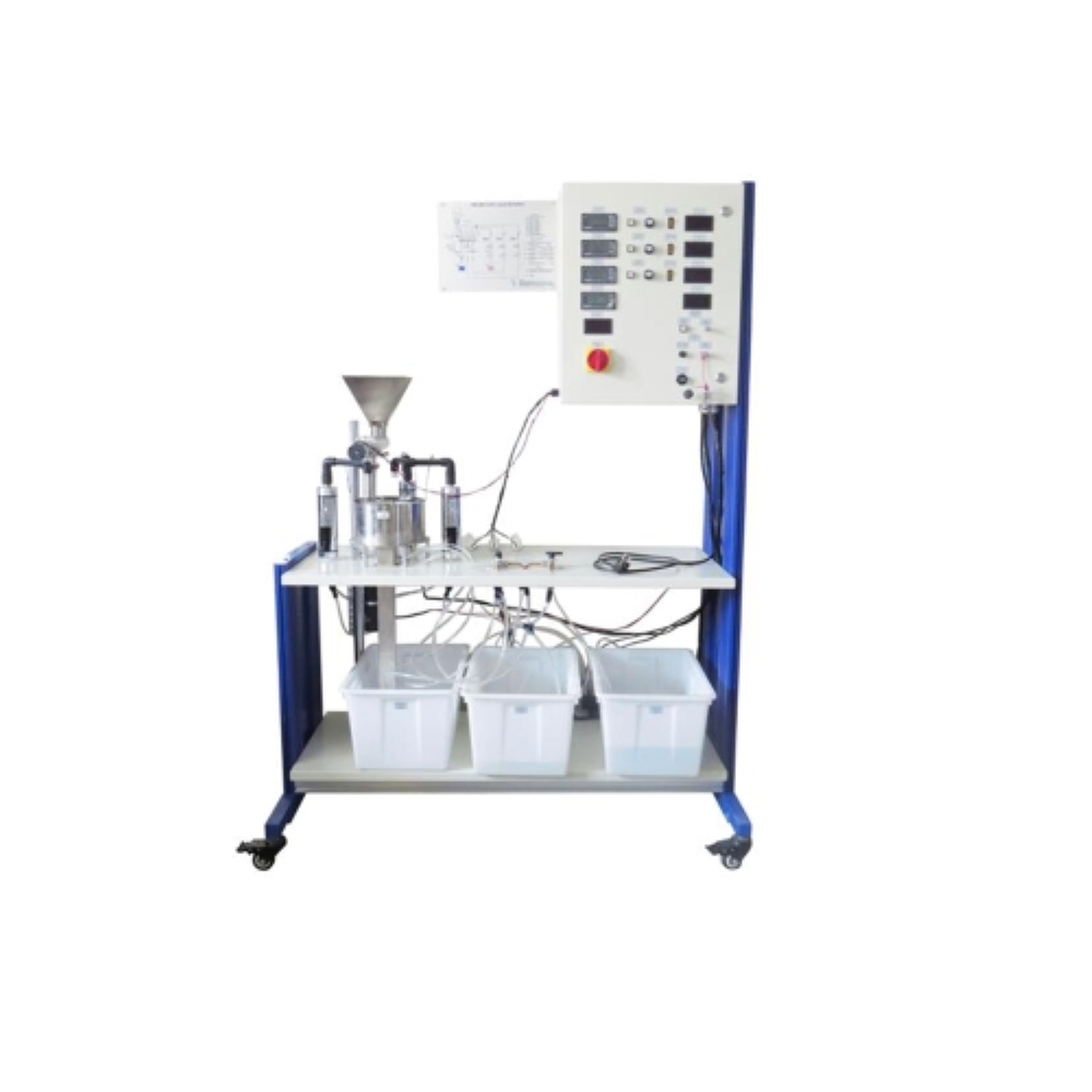 MR-CE 630 Solid- Liquid Extraction Vocational Training Equipment Fluid Mechanics Experiment Equipment 1. Product Overview Extraction is a more efficient, selective, and cost-effective method that can replace separation methods such as distillation, evaporation, and membrane technology. Applications of this method include obtaining oil from oilseeds or leaching metal salts from ores. The solid-liquid extraction experimental platform uses a solid-liquid extraction (leaching) method to separate the solid mixture. Solid-liquid extraction is the use of extractants to remove soluble components from solids. The test scope includes the following areas: Familiar with the basic principles of solid-liquid extraction Prove that solid-liquid extraction is a continuous and discontinuous process Study of single, two and third processes Effect of extractant flow and temperature on extraction process Effect of extraction material mass flow rate and carousel speed on extraction process 1.1 Instructions for use This unit can be used for training in the field of thermal processing and instrument manufacturing. It is designed for training and is not suitable for industrial use. 1.2 Product parameters Dimensions (LxWxH): 1360 x780x 1900mm mm Weight: <180Kg Power supply: single-phase AC230V 50Hz 2.1 Features The operation of the extraction training device is based on the countercurrent principle. This method is used, and the concentration gradient serves as the driving force for mass transfer. That is, the fresh extractant is fed into the rotary extractor to extract the extraction material. The rotary extractor rotates slowly above the perforated base, and the material to be extracted is continuously fed into the rotary feeder unit through the screw conveyor. In the unit, the extractant is sprayed, and the extractant valve can be selected for single-stage, two-stage or three-stage Continuous operation to extract materials, the leached extraction residue falls into the designated container after one rotation of the feeder. The interrupt mode can stop the rotary extractor. Three pumps can be used to transport the extractant from the extractant container, and their speed can be adjusted individually for each stage. During the working process, at least one of the three process pumps is turned on, and the exhaust pump will automatically start, and then the extraction liquid is transferred to the designated container. Using a heater with temperature adjustment can adjust and display the temperature of the extractant at the relevant stage. Each stage is equipped with a conductivity sensor to monitor the separation process. All measured values can be displayed using the software. 2.2 Process description The unit (stage 1) is sprayed with fresh extractant, and the material extracted from this unit is then discharged into a designated container. The first two units (second stage) are sprayed with extractant from the first stage. The two units before the second stage constitute the third stage. The third stage is sprayed with the extractant discharged from the second stage. Therefore, the material to be extracted is completely extracted in the influenza unit. One unit is used for loading materials, one unit is used for emptying, and one unit is empty. After the first extraction experiment reached a steady state, data acquisition was meaningful only from the second extraction experiment. By adjusting the rotation speed, the residence time of the extracted material can be changed. 2.3 Software Studying the solid-liquid extraction process on a PC can record data, which is beneficial to the study of the extraction process. 2.5.1 System requirements for software installation • 250 MB of available hard disk space. • CD-ROM drive. • Graphics resolution 1024 x 768. • USB1.1 or above. • Operating system Windows 7 3. Experiment 3.1 Preparation of extraction materials 3.2 Discontinuous extraction experiment 3.3 Effect of number of stages on extraction performance 3.4 Effect of extractant temperature on extraction performance 3.5 Effect of extractant flow rate on extraction performance